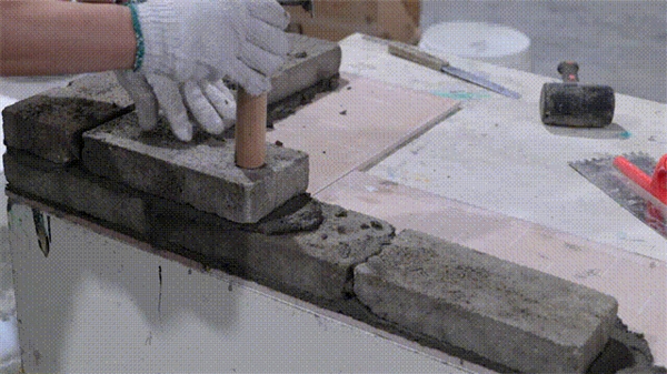 添加科顺家庭防水-砂浆宝后,水泥砂浆的摊灰长度增加,提高了砌筑效率,省时省力。