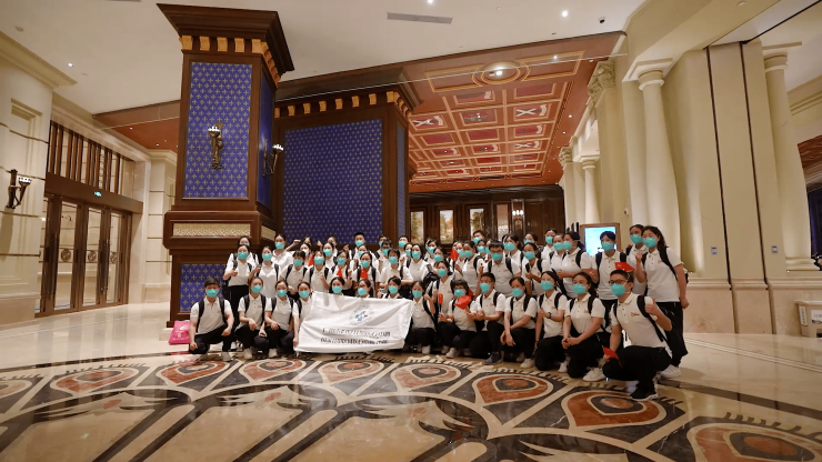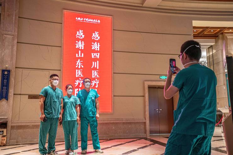 8月8日起,儋州海花岛每晚上演“众志成城,同心抗疫,团结必胜,海南加油,儋州加油”防疫主题灯光秀,致敬四川、山东、广州援儋医疗队,为海南战疫加油,向社会传递正能量。此外,在海花岛欧堡酒店大堂的LED屏幕也展示了多条致敬援儋医疗队的标语,让每一位援儋医护人员感受到了暖暖的儋州温情。