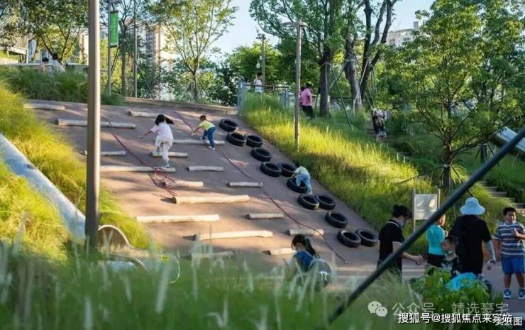 成长探险乐园:游乐区与园林结合,打造科普花园,设计攀爬树屋、滑梯、秋千、趣味沙坑、家长看护区、婴儿车停放区等