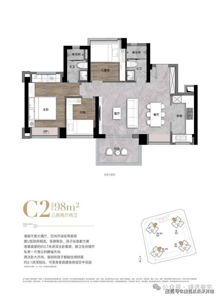【产品类型】拟建面约68-98㎡二-三房