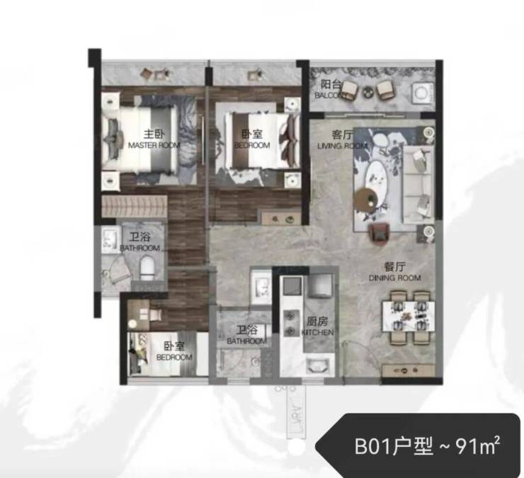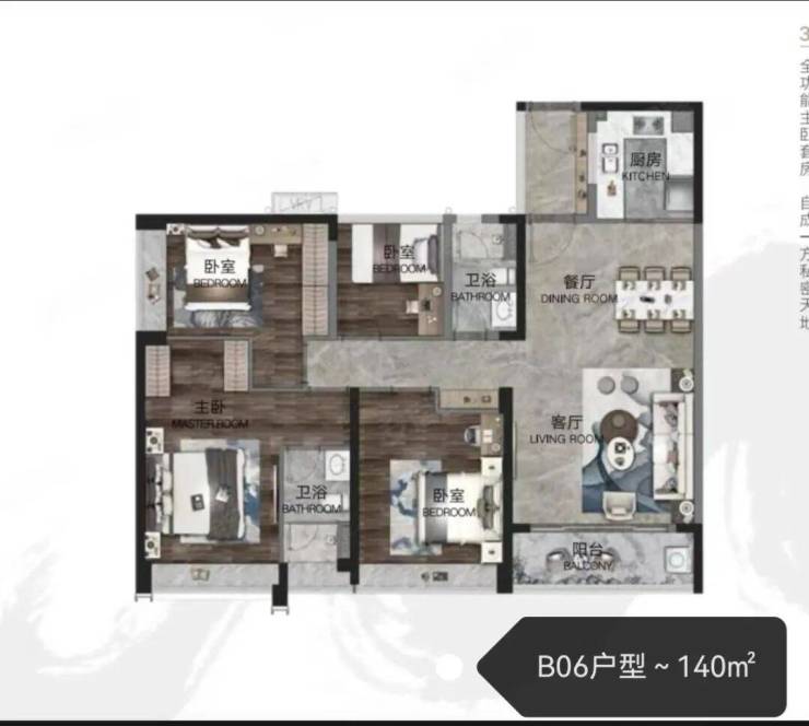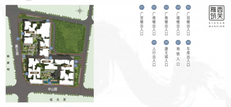 外立面现代中式建筑风格建筑外立面为著名的冼剑雄老师手绘设计,立面材质大面积玻璃幕墙,通透质感。这种设计,不止颜值高,实用性也很强。类玻璃幕墙,成本比普通涂料高了近一倍,但透光性也更强,能保证每一户的采光