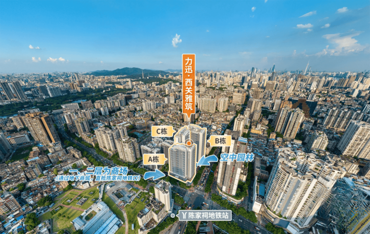 国际垂直CBD生活下楼可直接进入商场休闲美食娱乐,再通过商城联通地铁陈家祠站,无惧风吹日晒雨淋。