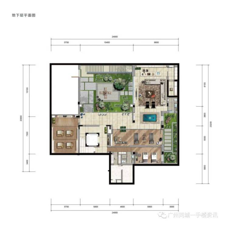 在如此舒展的庭院空间中,开辟出一片梦幻的水中乐园,丝毫不显得局促。