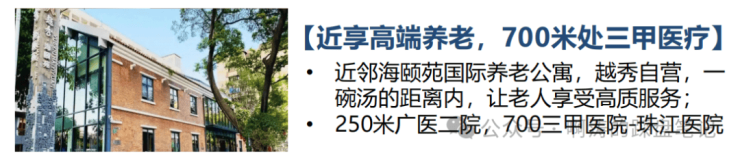 步行约700m可达珠江医院(全国首批三甲)、约250m广医二院(西院区)、南石头社区服务中心;周边约3km内广州红十字会医院、妇幼保健院(二甲)、省口腔医院(三甲)、中山孙逸仙医院南院、广中医骨伤科医院等医疗体系,24H为健康护航。