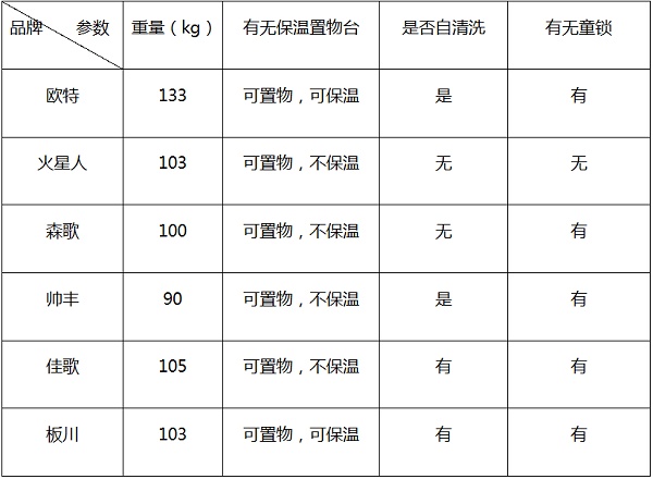 细节方面,我们对各产品的重量、是否有保温置物台、是否自动清洗等参数进行对比,结果如下: