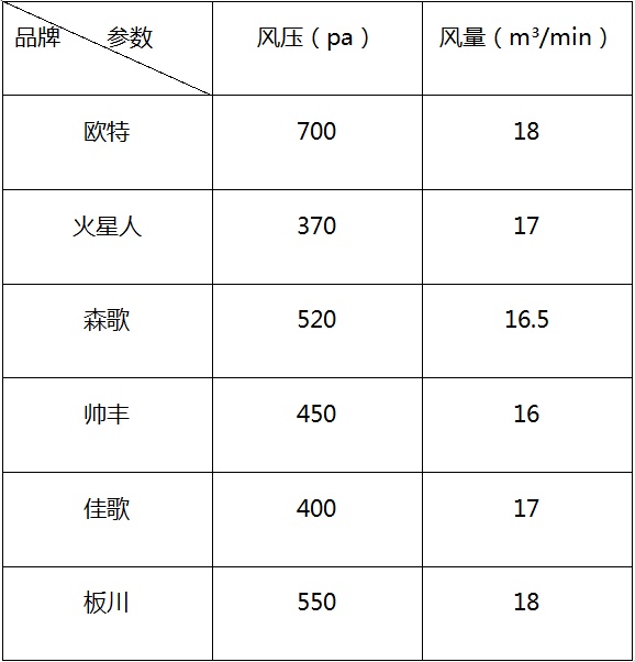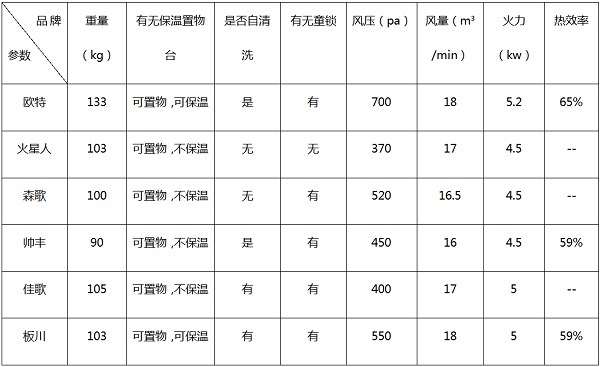 我们选出了市面上相同价格区间的热销产品(佳歌T2ZK、欧特X7-ZK、火星人F60BC、板川M20ZK-A、帅丰J5-7B-90T、森歌Q7SZK ),对其相关参数进行了对比,结果如下: