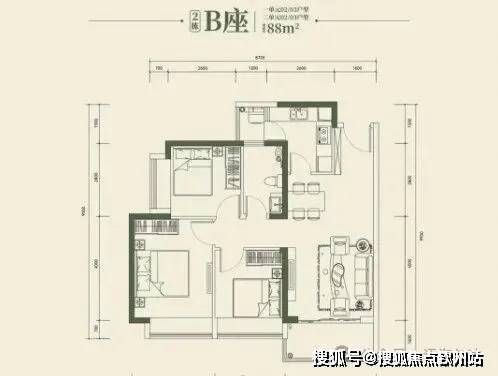 88平方米3房2厅2卫:适合三口之家或二孩家庭居住,功能性强,满足多种生活需求。