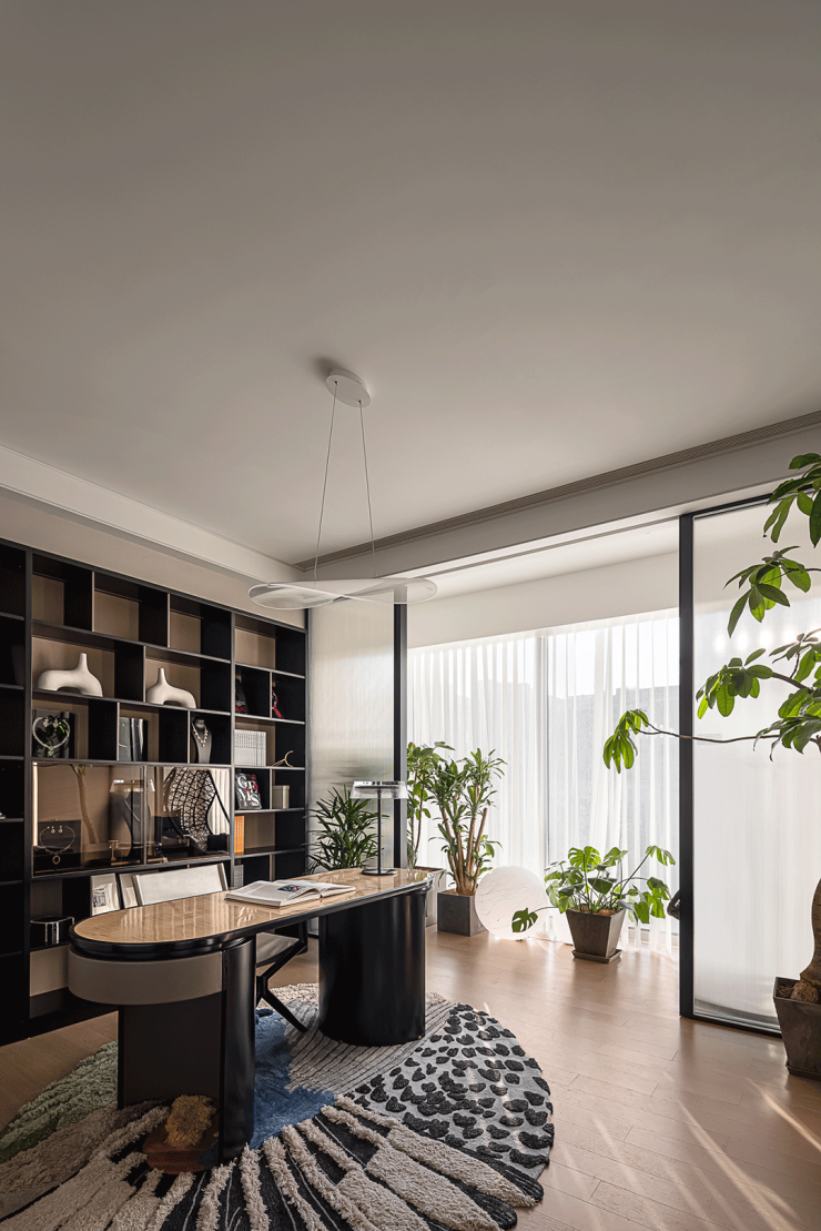 卧室是一个居所传递温度的媒介,它记录着故事,也观照着所有成长与交互。主卧内,温润木质在柔和光线的梳理下,创造出适宜休憩的环境。暖白的睡眠空间,材质间细腻无声,彼此结合,赋予沉稳静谧的调性,将一室素雅留给心无杂物的使用者。