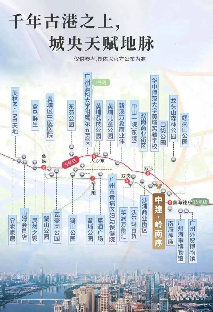 中建岭南序,步行距离约800米13号线南海神庙站(一期已通车,二期即将通车),30分钟直达珠金琶CBD;