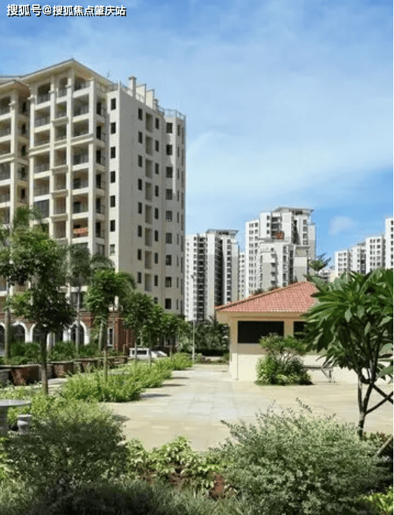 园林景观:利用约 8 米地形高差打造台地园林,由低到高形成草坪、花卉、小灌木、小乔木、大乔木的五重立体景观,错落排布,四季有花,结合南高北低地形布局形成扇形超大景观视野,人均可使用景观面积远高于行业水平。