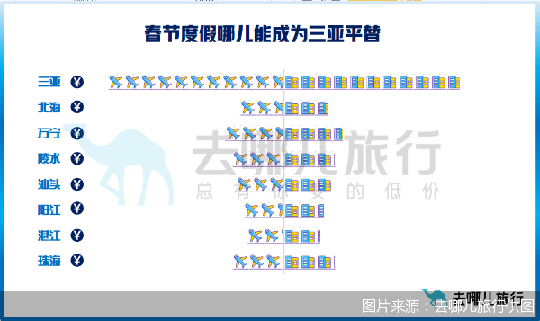 北京商报记者在去哪儿平台上发现,已经有用户分享了“平替”攻略。这其中,北海、万宁等有望成为“平替”的目的地。有用户称:“北海市位于广西最南端,地处低纬度,冬季气温在20度左右,洁净的海水、细腻的白沙、鲜活的海鲜是吸引力所在。北海在春节期间的机票+酒店价格仅为三亚的1/3。”此外,海南万宁、陵水;广东汕头、阳江等地,也成为了“平替”的选择之一。