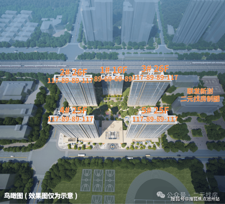 因为建筑限高80米,所以项目没有超高层:1号楼为16F,2-3号楼为26F,4-5号楼为25F。