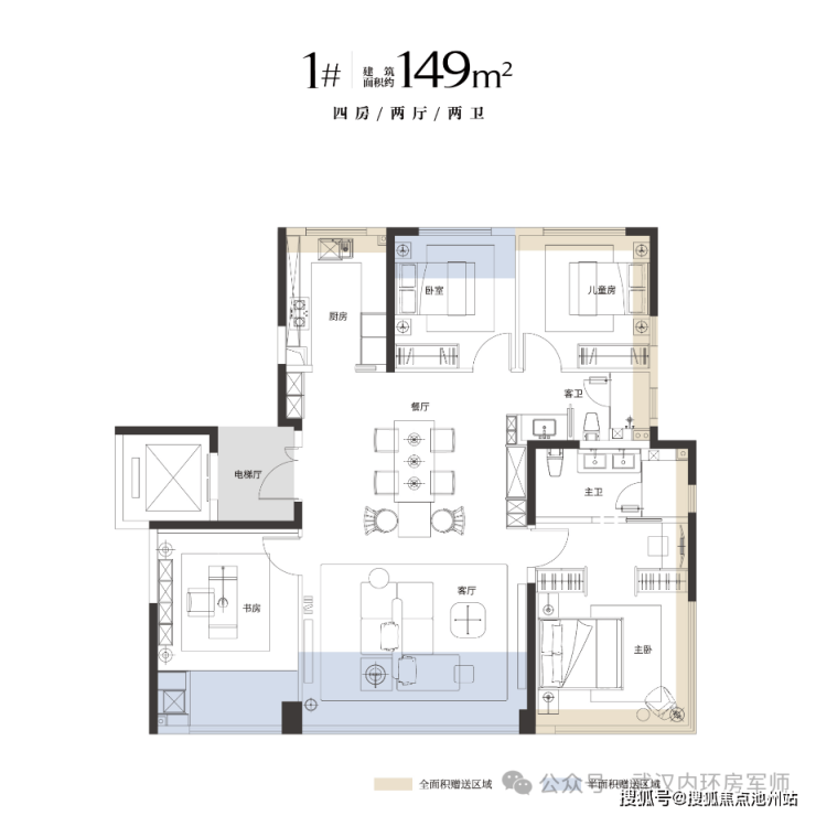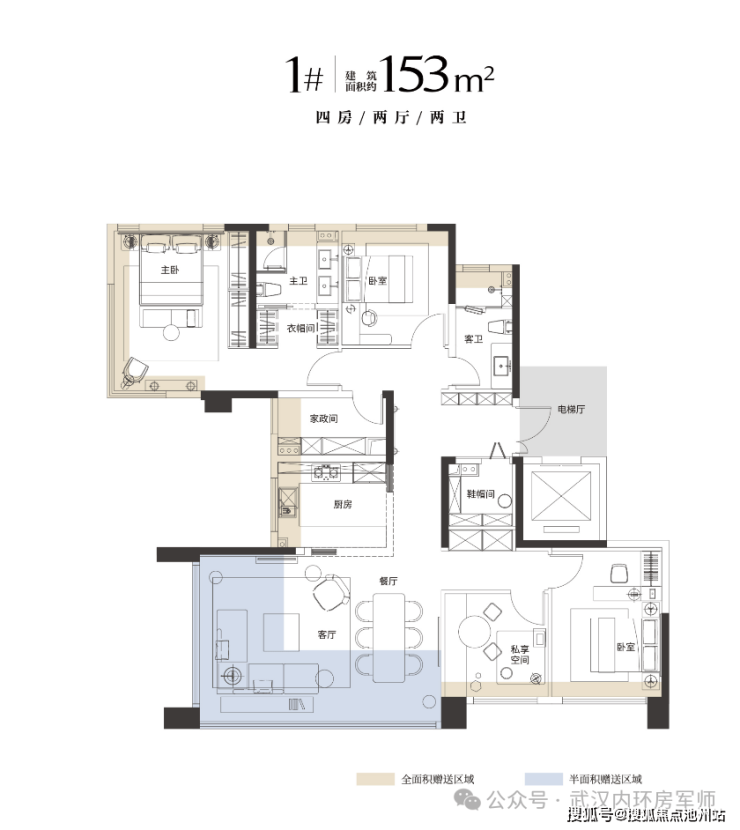 全系建面约149-189㎡纯粹四房,采用2T2独立电梯厅设计。户型均标配“三大件”(地暖、中央空调、新风),主打LDKB一体化方厅与高得房率。约189㎡端户可实现270°观景,但部分单元因临路或楼栋布局,存在噪音与视野差异。全屋功能齐全,但未设独立家政间等特定功能空间。