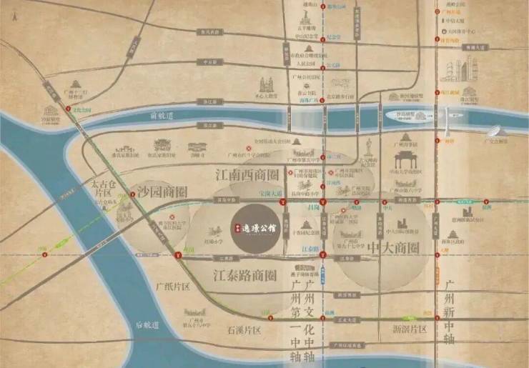 中冶·逸璟公馆坐落于广州市海珠区核心地段,地处宝岗大道与江燕路交汇处,紧邻广州塔、琶洲国际会展中心等地标。项目所在的“三横五纵”交通网络(昌岗路、江南大道等主干道)及地铁2号线、8号线、在建11号线(2024年通车),使其20分钟内可达珠江新城、金融城等核心商圈,30分钟通达白云机场,区位优势显著。