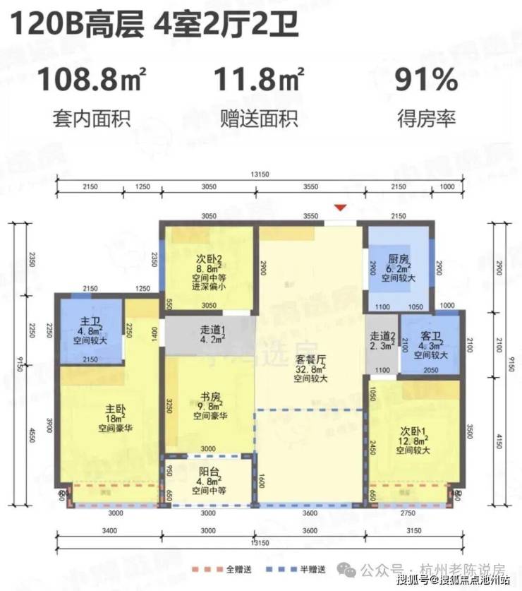 阳台仅算一半建筑面积,实际得房率极高!