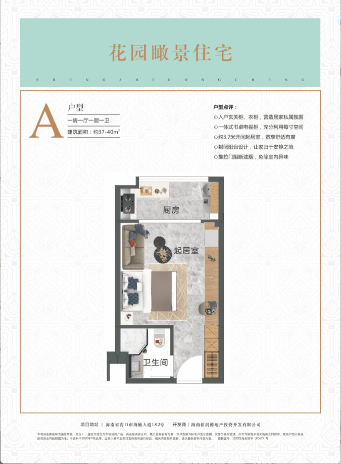 🏬绝版稀缺小户型:2017年,海口停止申报100㎡以下商品住宅审批,盛世东城以约37-41㎡开间住宅及约79㎡两房住宅,悦享美好生活。
