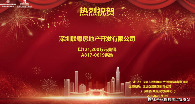 该地块是深圳2025年经过30分钟65轮竞争,最终联发地产以12.12亿元斩获龙华A817-0619宗地,溢价46.6%。