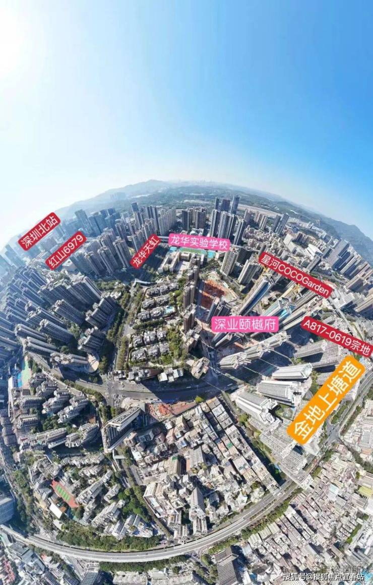 根据地图示意,该宗地位于金地上塘道2期西侧,周边还有中城宴华府、星河传奇、尚誉红山里等次新小区,地块北侧是隔圳新村。