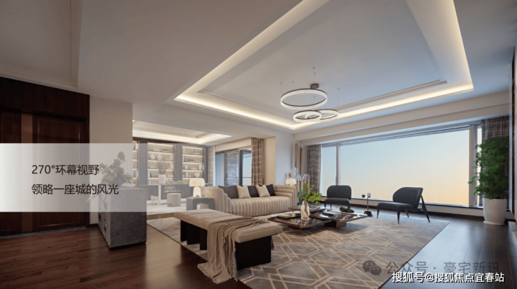 •约13米开间客厅,超阔景观面 IMAX环幕视野尽收脚下,超然尺度宅居享受雍容空间随心时光;