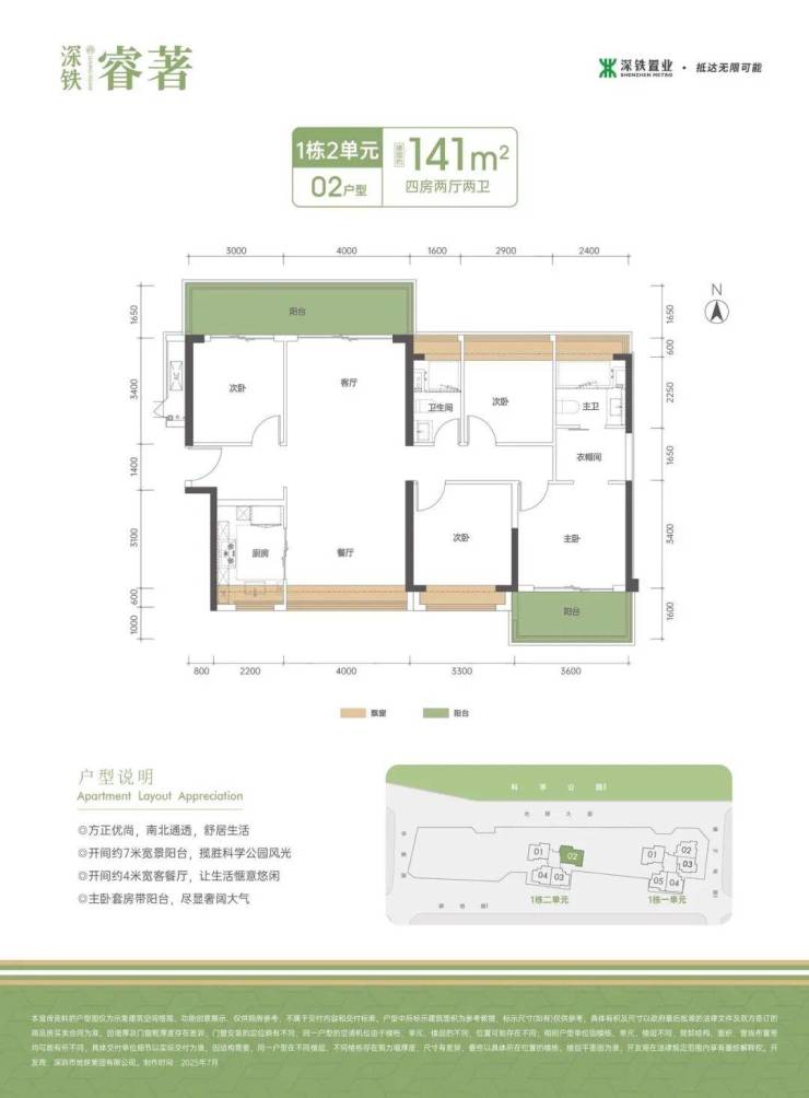 深铁睿著与这片绿肺仅一街之隔,部分户型实现了五个主要空间均能直面公园景观。尤其是141㎡户型,约13.9米的宽阔景观面,将公园的“日之湖”与“林霄栈道”尽收眼底。
