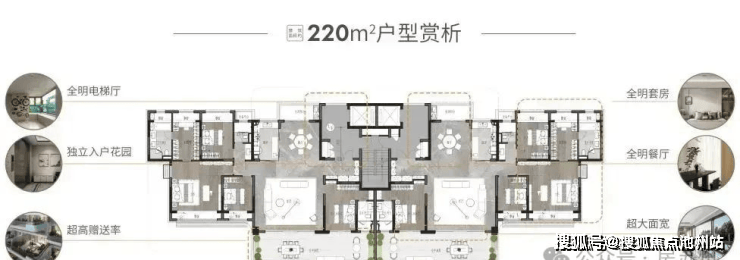 ·产品规划:建面约150㎡、185㎡、220㎡,户均约30-50㎡空中庭院