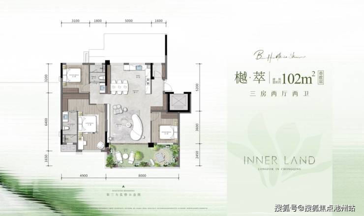 龙湖观萃 平层户型·建面/102㎡
