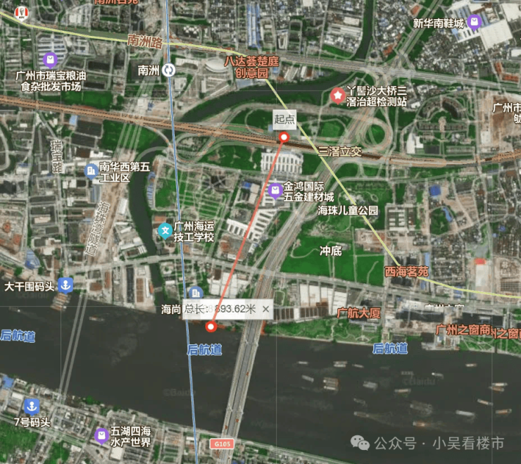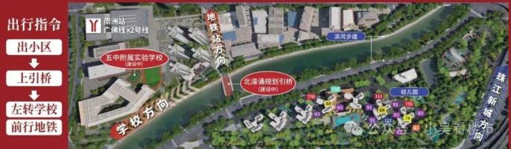 项目距离最近的地铁2号线和广佛线交汇处南洲站还是比较近的,目前家门口的北濠涌引桥已经开始建设,届时完工后,通过这个桥,从天翠去地铁站和五中附小都会方便很多。