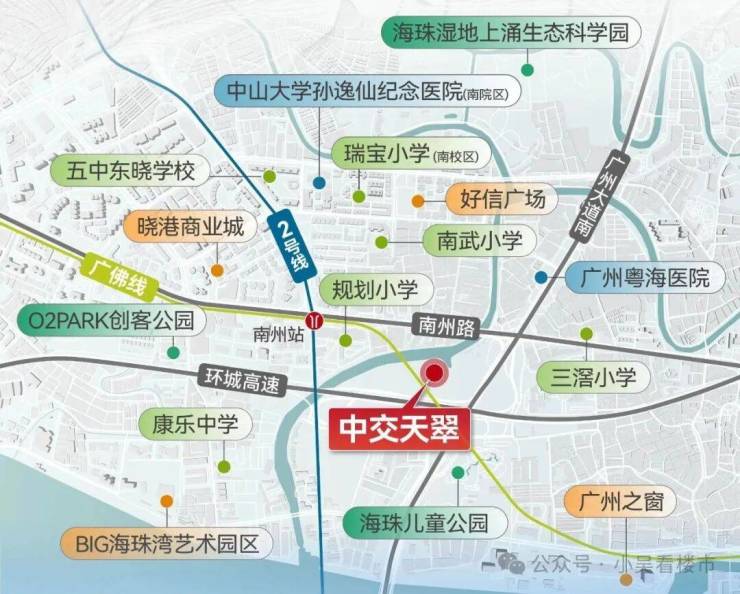 项目位于海珠西部南洲板块,就在广州大道南和环城高速交汇处,所以项目自驾出行还是挺方便的,不过由于小区紧邻两条主干道,所以噪音和粉尘影响也基本少不了,项目距离地铁也不远,教育方面也已经官宣了,可以就近入读绿城配建的的五中附小,中交天翠总共有7栋楼,算是板块内比较少见的大社区项目,小区旁就有座大型的市政公园,整体绿化也优于附近的几个盘,天翠目前主要在售6-7号楼,户型有82-91-113平的三四房产品,其中81平的总价370万起就能买到,91平的单价也是4.4万起,这个价格算是海珠西片区拥有学校+地铁中性价比最高的盘了,有兴趣看房的可以联系博主。