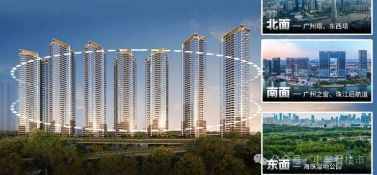 因此中交在小区设计上,中交天翠尽可能扩大江景面,7栋住宅楼一字排开,前后都有开阔视野,北面临河,南向高层看珠江。