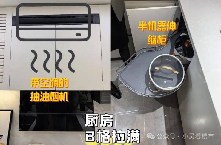 厨房配置的是方太防干烧燃气灶,大火爆炒、文火煲汤皆能完美驾驭,市场参考价近 3W+,橱柜内嵌制冷压缩机,出风口巧妙设计,降温同时不影响火候,同时搭配价值1.5万+的方太集成净洗中心,能放下大容量洗碗机+大单槽洗碗池,好看又好用。