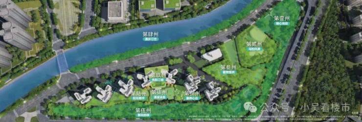 城市里稀缺的,一是江,二是河,三是公园,项目南向望江,北向看河,中心看公园,把所有稀缺自然生态要素通通占了。