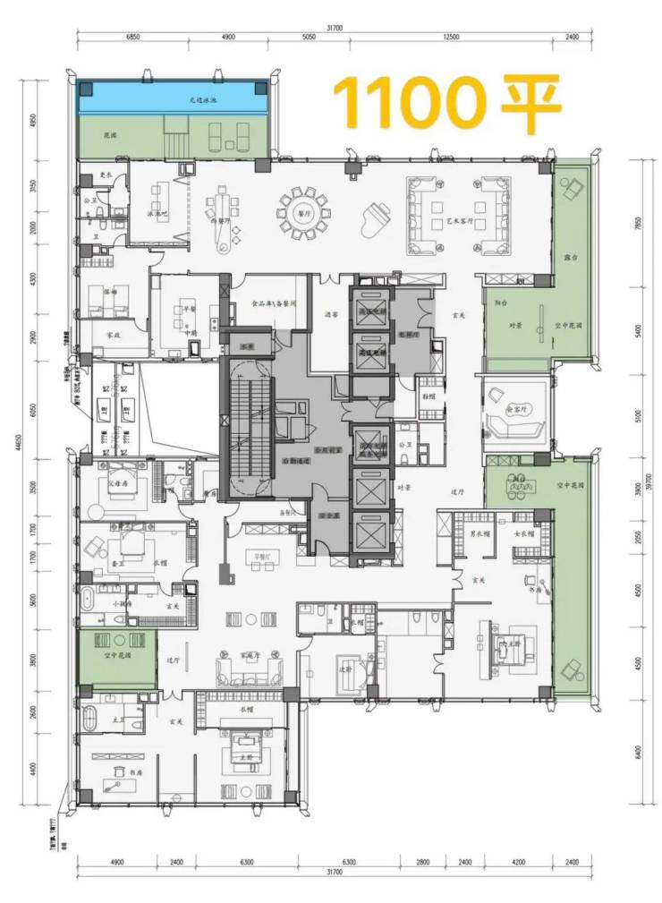 顶楼:约1050㎡整层大平层(仅3套)。