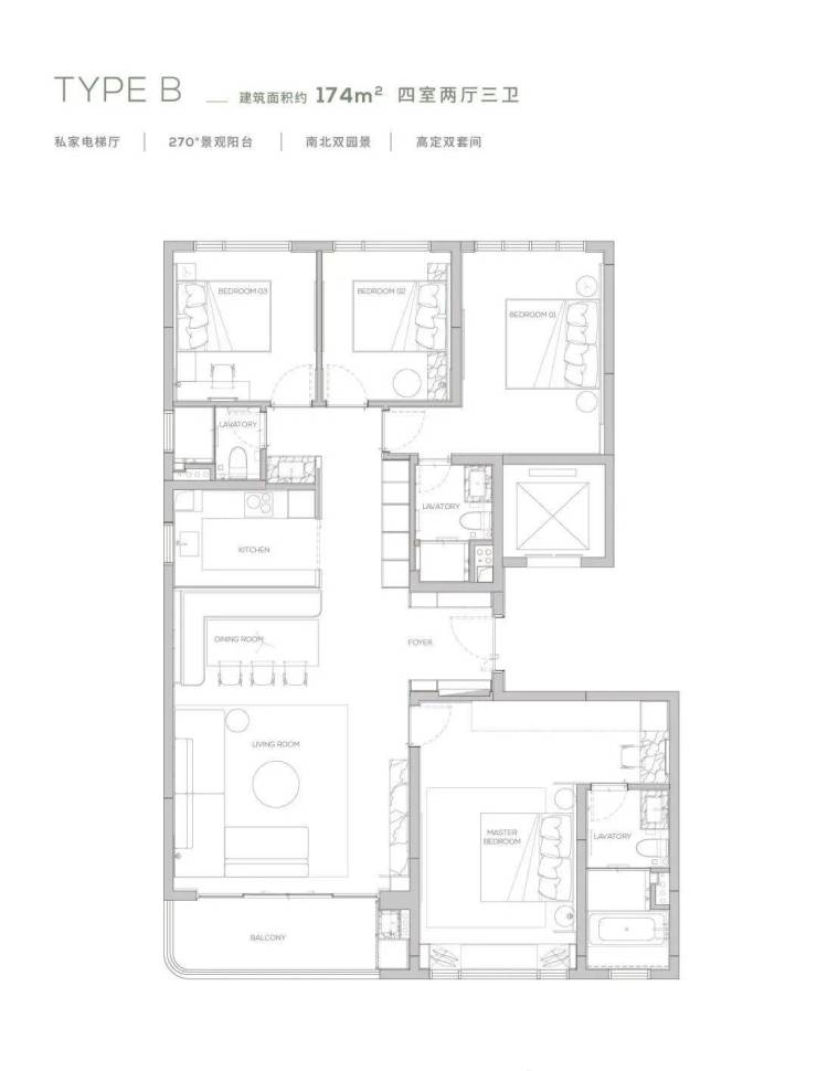168㎡四叶草户型 四室两厅三卫