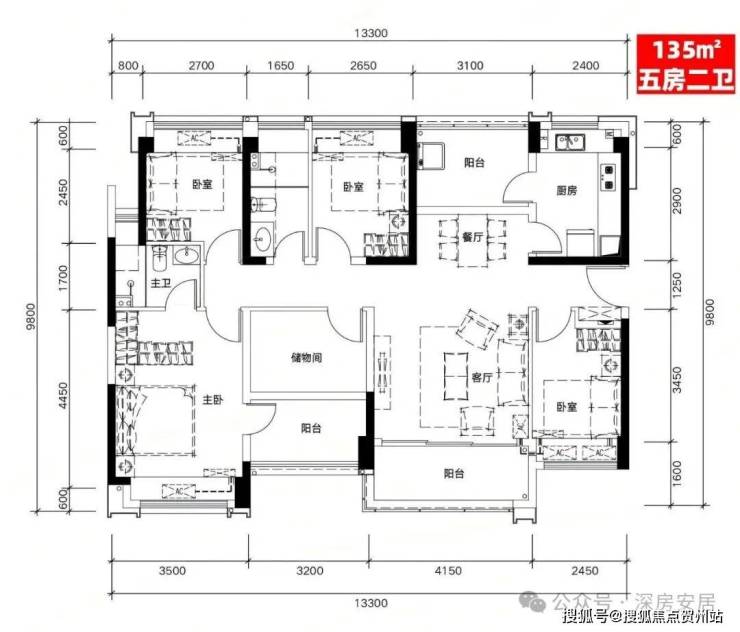 E户型:135㎡五房二厅二卫