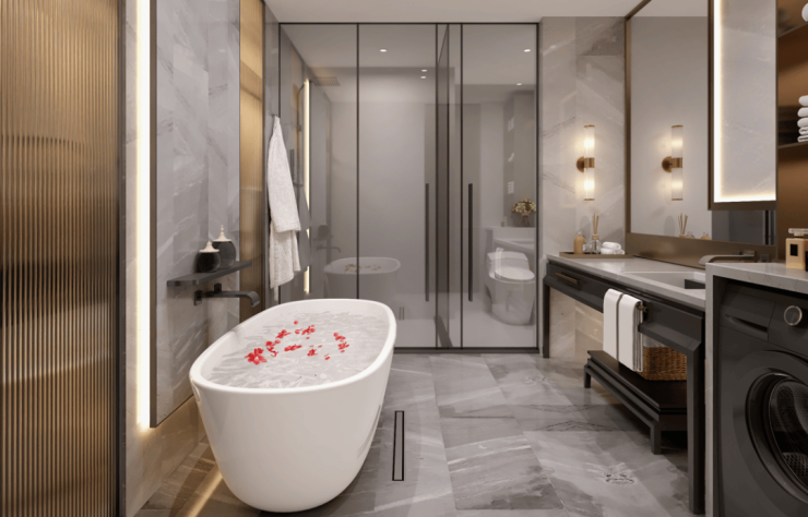 超星级酒店式浴缸设计,大空间卫浴尺度,让每一位居者在沐浴中享受无尽的奢华。构造一方极度奢享的私人国度。