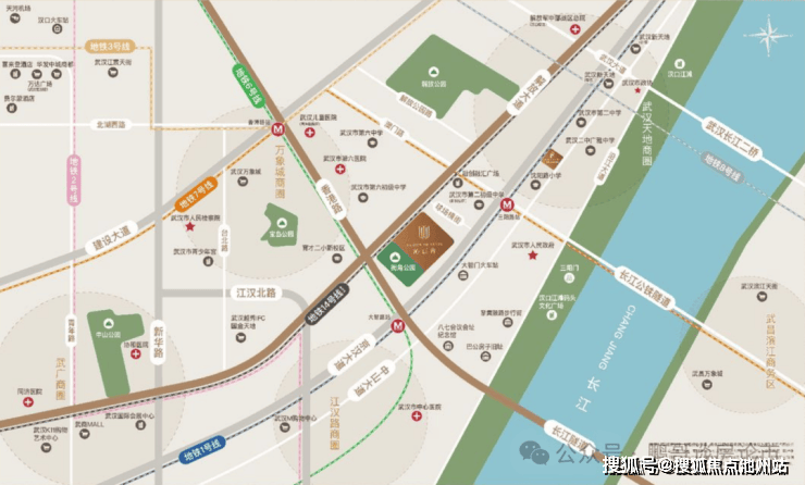 周边直线3km范围内有15个地铁站(大智路、苗栗路、三阳路、循礼门、香港路、江汉路、黄浦路、取水楼、惠济二路、菱角湖、友谊路、六渡桥、三眼桥、赵家条、中山公园),轨道交通发达,距离最近的地铁站是大智路。