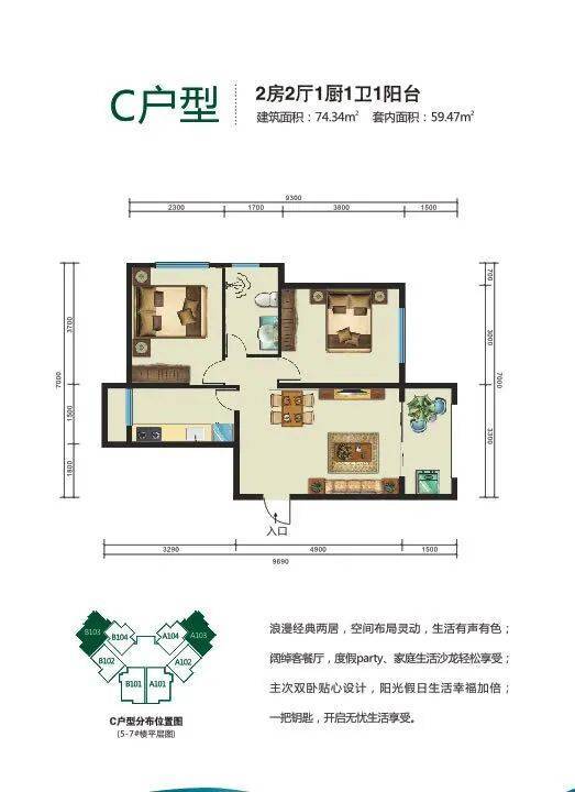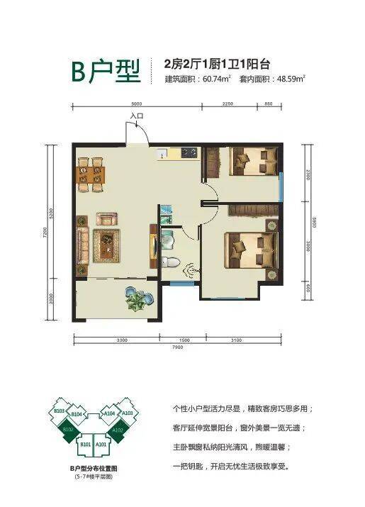 ❤:主力户型:53.47平一房一厅、60.22平二房二厅,73.06、77.98平二房二厅