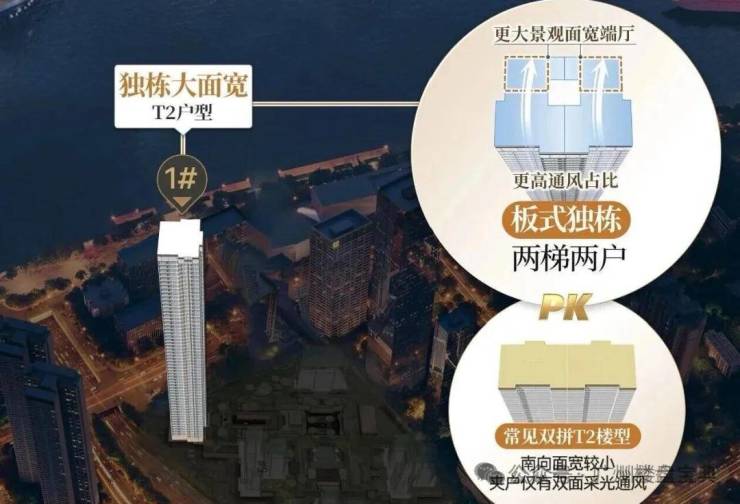 1栋为T2独栋板楼,户型有176-246平,5栋为创新T3类板式楼型,板楼本就难得,T2独栋板式更是“楼中龙凤”,其户型规整,通风强且互视少,实现L型大尺度瞰江阳台+约36米观江面开间+专梯入户,体感舒适度、居住私密性极致拉满。
