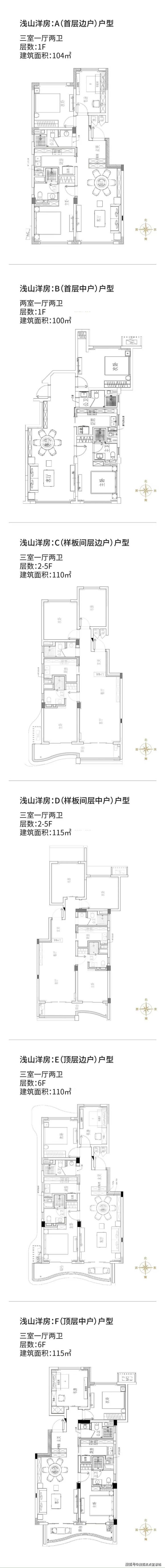 100㎡ 两室两卫 | 104㎡-115㎡三室两卫