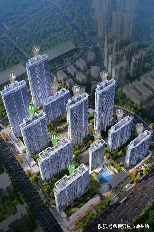 8号楼总高33层,一楼架空,与7号楼的楼间距约39米。