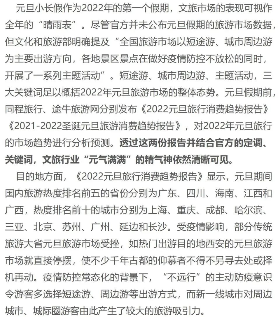文旅周报 | 2022年元旦小长假树立全年旅游市场“风向标”