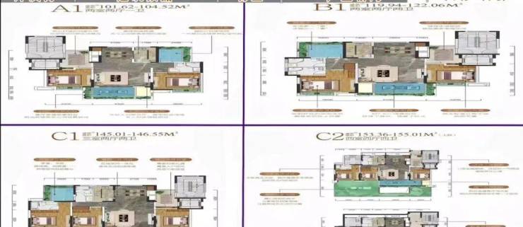【主力户型】建面约101㎡两房两厅一卫,119㎡两房两厅两卫,145㎡三房两厅两卫