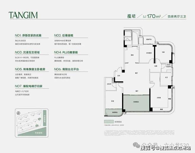 高层与洋房均是风靡全中国豪宅的南厅格局,全部内外双玄关,标准层高约3.3米(少量约3.15米),户户南北双家政空间。