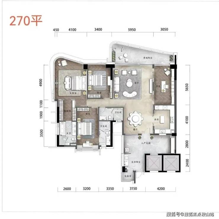 约365㎡5房双套房|2厅|4卫|3阳台+1工人套房
