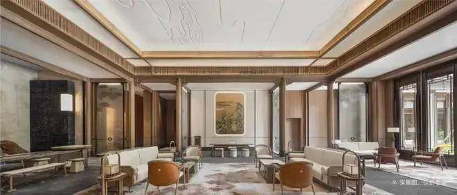 保利天瑞在新中式府院的形制打造上,并没有把眼光聚焦在或唐或宋,或徽派或岭南的建筑皮相上,而是取了中式的骨相,然后用当代前沿的设计元素进行表达。