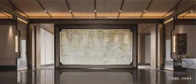 松石,是中式园林造景的绝佳组合。保利天瑞门楼前,迎客松和龟纹石相映,庄重雅致;门楼后,玉石照壁整雕松石山水,温润内敛。为保证所有玉石材质光泽的统一,保利天瑞所使用玉石,均开采于同一个天然玉旷。