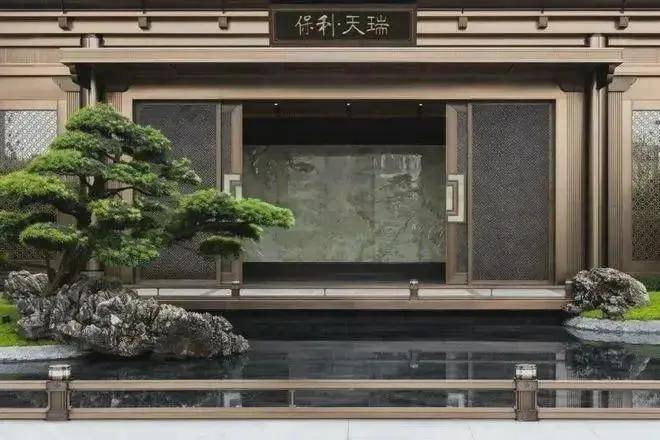 保利天瑞有现代主义元素美感的金属线条去勾勒轮廓,用反曲线去表达飞檐,用大面积的古铜色不锈钢去呈现美学面貌。