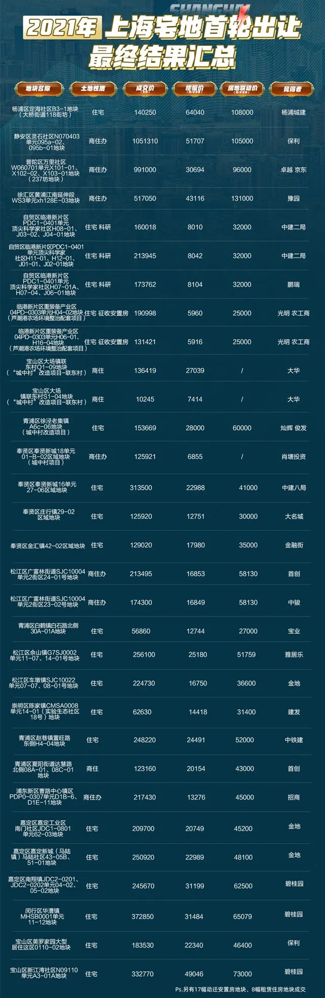 上海首轮集中拍地正式收官!细数6宗“最”!