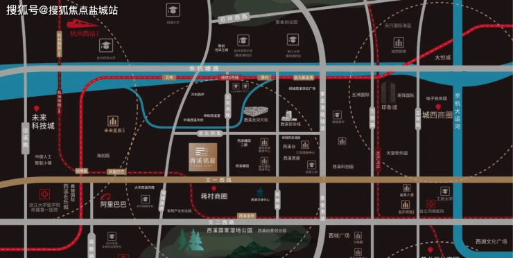 择址蒋村板块,地理位置优越。东接繁华的文教区,西临“宇宙中心”未来科技城,距离西溪湿地直线距离仅800米,闹中取静,拥享静谧诗意生活。
