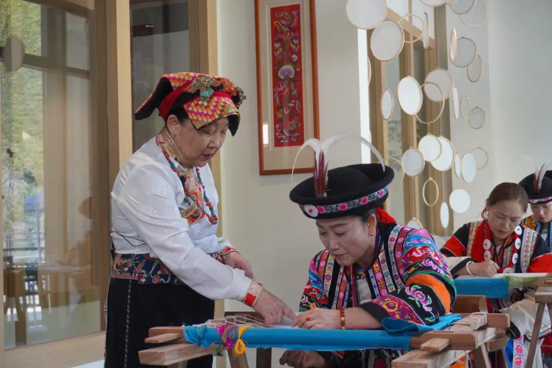 在弘扬传统而淳朴的藏羌文化的同时,中国绿发持续探索推动阿坝州非遗产业和文旅产业融合发展,以产业帮扶实现村寨居民生活提升,以乡村振兴助推“共富”目标实现。项目团队联合九寨沟县政府邀请了高级非物质文化遗产传承人杨华珍来到博物馆指导展陈讲解和开办学习班,讲解传授藏羌织绣的制作工艺,让留守在村寨的老人有机会学习到非遗技艺,为日后村民带来持久稳定的收入。这些藏族老人通过培训练习,用一针一线绣下千百年的文化传承和精神承载,绣出一幅美好生活的画卷。